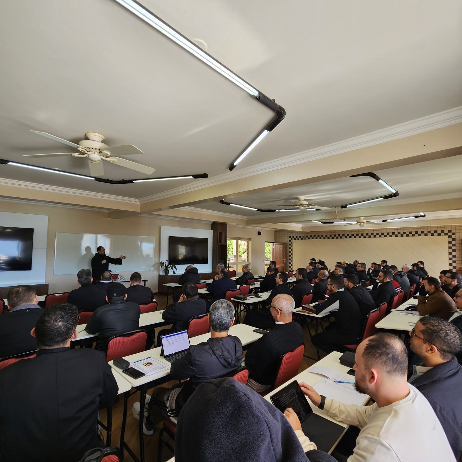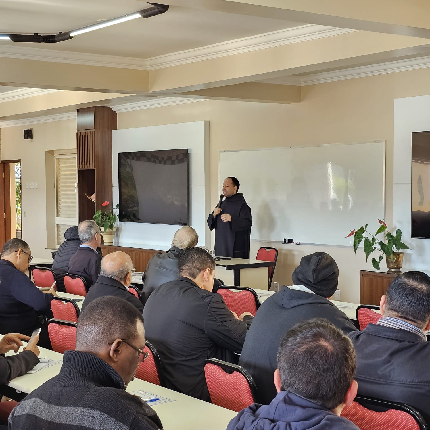 Na manhã desta terça-feira (15/07), os presbíteros da Diocese de Campos participaram da primeira palestra do encontro. O primeiro tema foi “A Esperança no Ministério Sacerdotal”, que abordou qual a esperança que move os presbíteros. O retiro tem como pregado Dom Basílio da Silva, OSB, monge do Mosteiro do Rio de Janeiro. Dom Basílio é Doutor em Teologia Bíblica pela Pontifícia Universidade Gregoriana, Professor de Teologia Bíblica da Faculdade São Bento no Rio de Janeiro.
