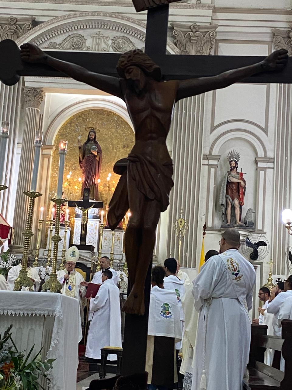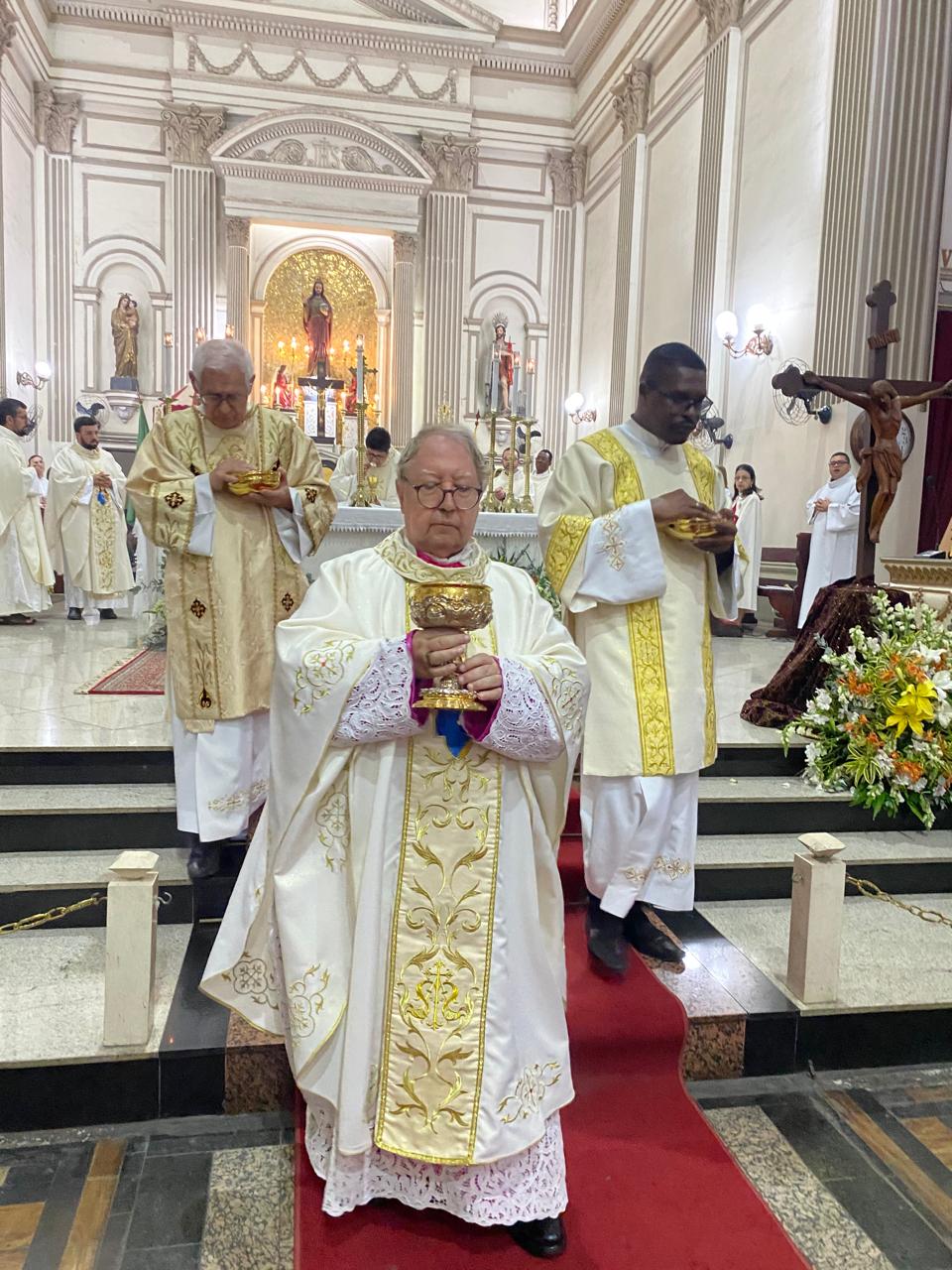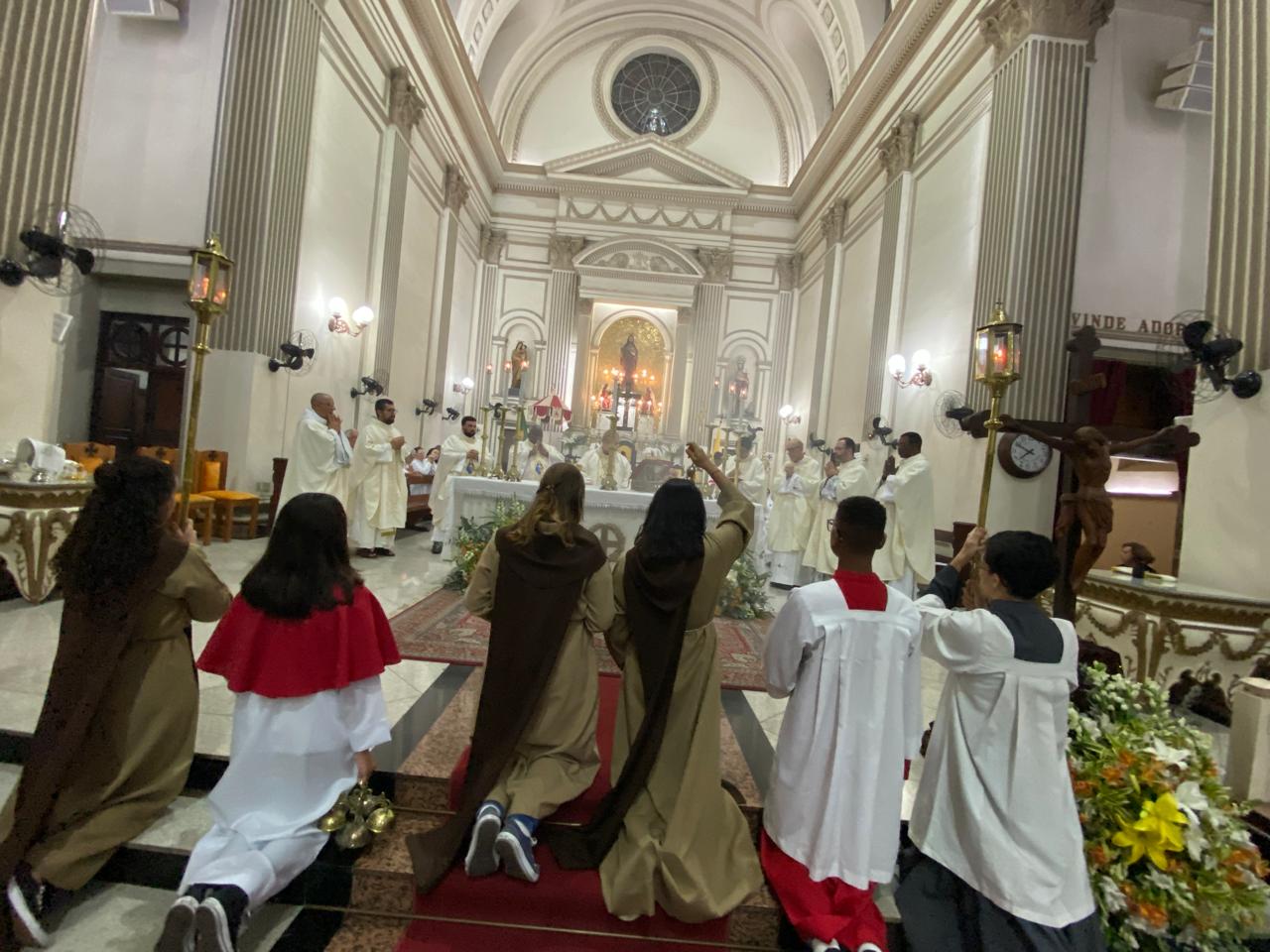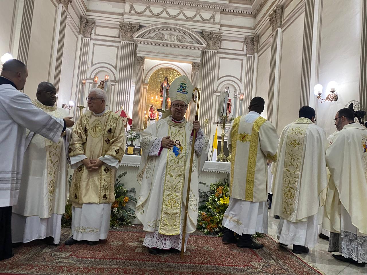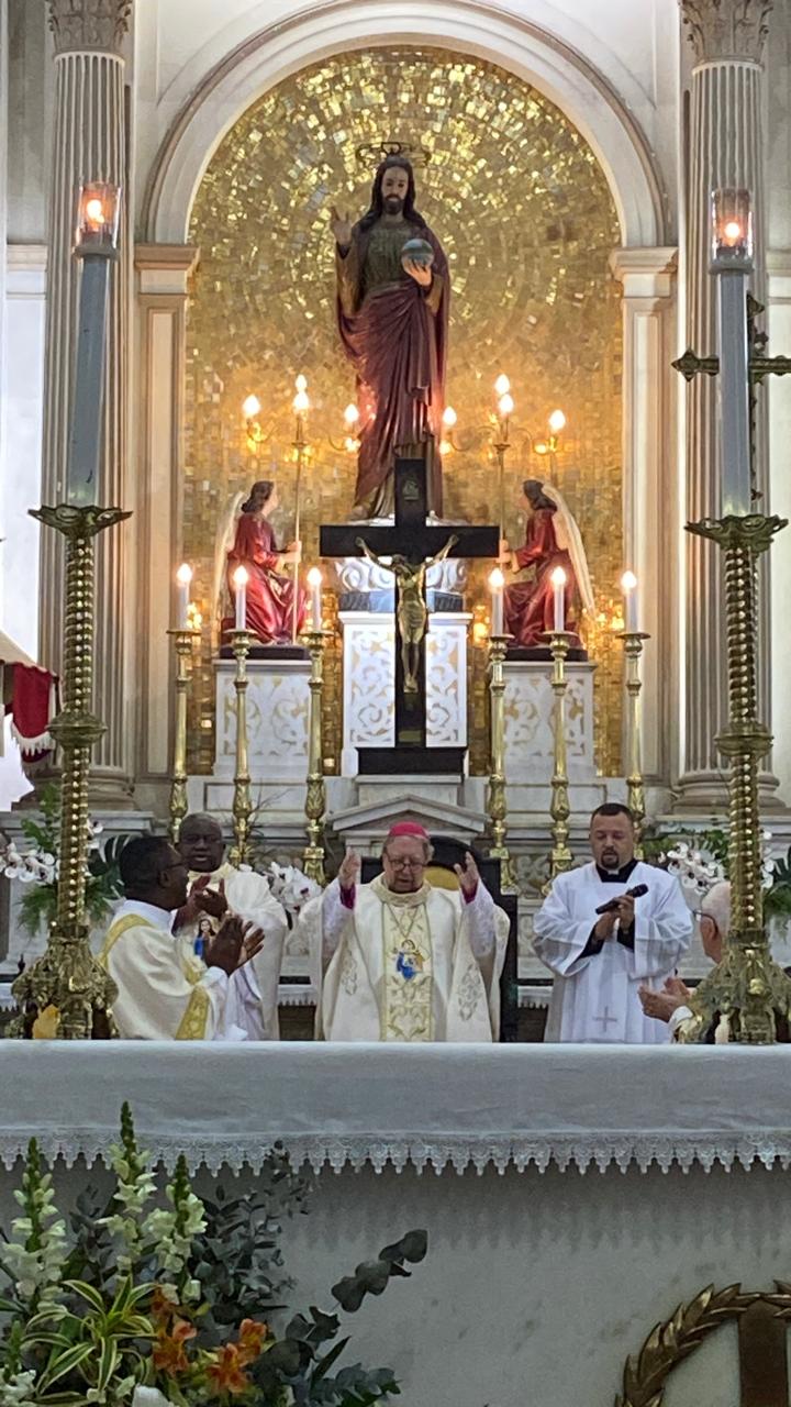 Na noite desta quarta-feira (30/07), o Bispo Diocesano de Campos, Dom Roberto Francisco, presidiu a Santa Missa que marcou o terceiro dia do novenário do Santíssimo Salvador, no Centro de Campos. A celebração também comemorou os anos da posse canônica de Dom Roberto na Diocese de Campos.