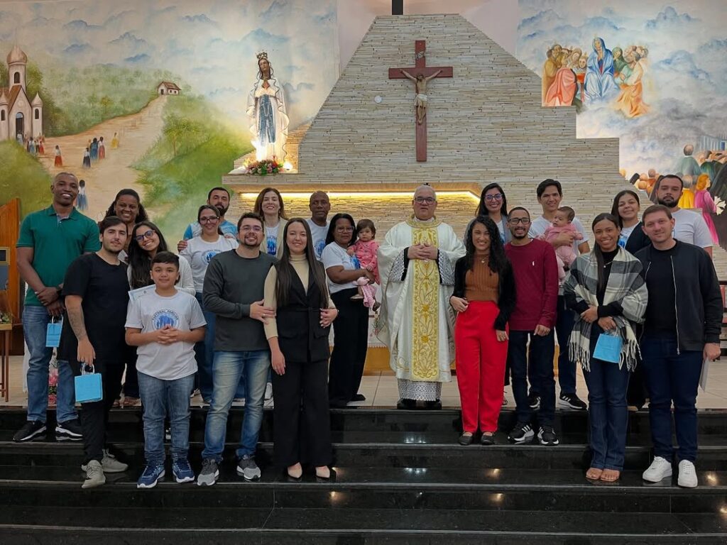 No último domingo (15/06), a Paróquia Nossa Senhora de Lourdes, em Itaperuna, na região Noroeste Fluminense, celebrou a Missa de encerramento da Catequese Pré-Matrimonial. A celebração, presidida pelo pároco Pe. Crimário Verdam, marcou o fim de um ciclo de preparação espiritual e pastoral voltado aos casais que desejam receber o sacramento do Matrimônio. Ao todo, seis casais participaram do percurso catequético, que abordou temas fundamentais da vida conjugal. A formação foi conduzida por agentes da Pastoral Familiar, com o apoio do pároco e demais lideranças paroquiais. Durante a Santa Missa, os casais foram apresentados à comunidade.