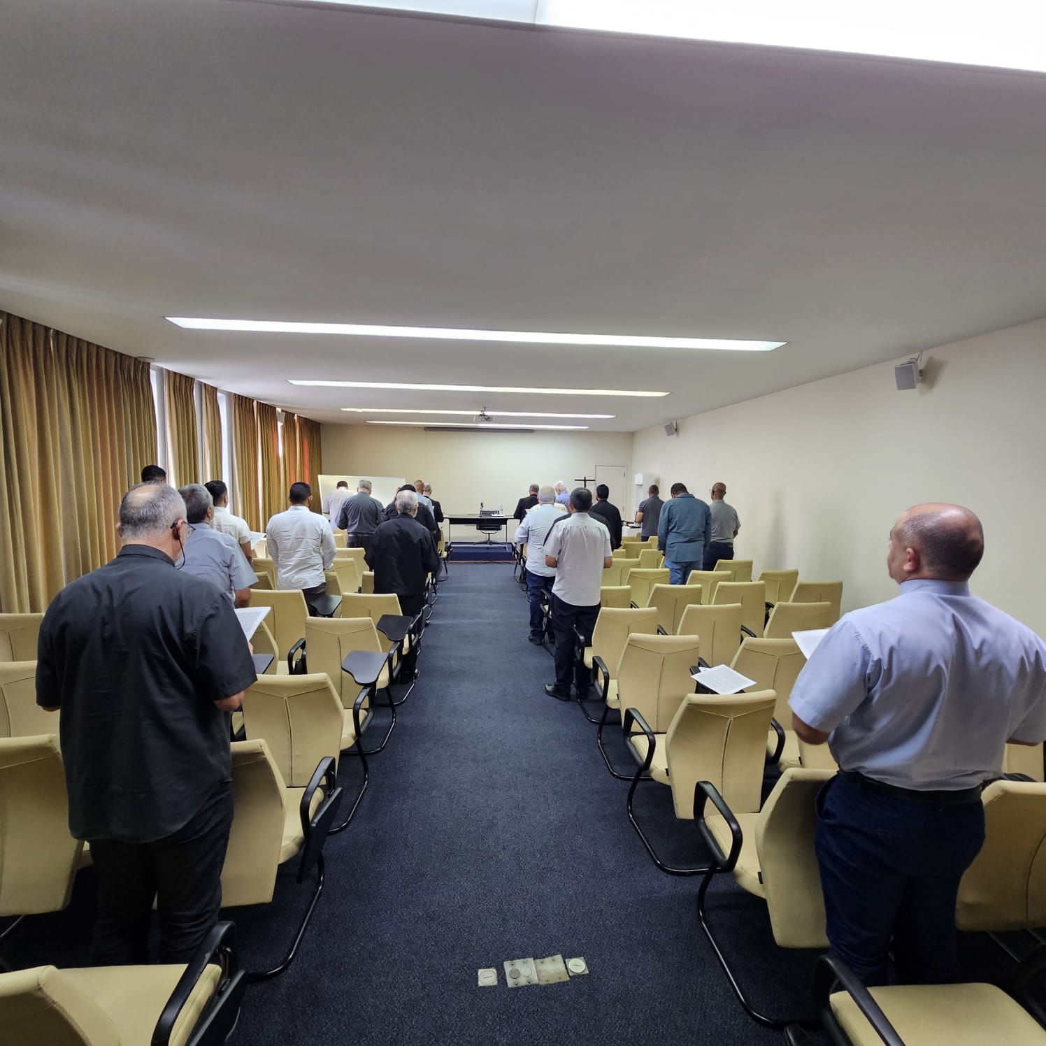 O Regional Leste 1 da CNBB promoveu, nesta quarta-feira (27/08), a Convivência da Comissão Regional de Presbíteros do Regional, que engloba as duas províncias: Rio de Janeiro e Niterói. A reunião, que aconteceu no Mosteiro de São Bento, na cidade do Rio. O encontro teve início com a oração inicial, através de um texto de animação bíblica da Pastoral, Con. José Rosa, acolheu a todos os padres das dioceses, bem como as boas vindas ao novo Bispo Referencial Dom José Maria, bispo auxiliar do Rio de Janeiro. O encontro contou também, com uma reflexão foi conduzida pelo Pe. Leonardo Agostini. Ele refletiu sobre a Esperança em São Paulo com aplicação na Vida Presbiteral. Destacou a diferença entre Amor, que é a essência de Deus, e a Caridade, o agir, a natureza de Deus. “Que a esperança em Jesus Cristo nos alegre, a paciência nos sustente nas tribulações, a perseverança na oração e na comunhão fraterna nos fortaleça, tornando-nos concordes na ação pastoral. Em vez de buscar vingança ou retribuir o mal com o mal, que sejamos um exemplo vivo de superação do mal pelo bem, promovendo, ao nosso redor, a paz e a reconciliação. É imperativo colocar em prática o mandamento de amar até mesmo os inimigos (Lc 6,27.35). Que não haja algum tipo de inimizade em nós e entre nós. Isto danifica o presbitério e nos corrói no mais íntimo de nós. Assim, o zelo no ministério se traduzirá em serviço fervoroso ao Senhor, contribuindo para as necessidades do povo de Deus, praticando a hospitalidade capaz de nos acolhermos como irmãos, refletindo com humildade, por palavras e ações, a sabedoria divina que nos volta para o bem comum. Gratidão pela sua escuta e fraterna acolhida. Sejamos homens jubilosos de esperança”, disse o Pe. Leonardo aos sacerdotes.