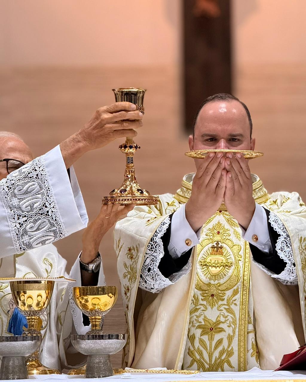 Fiéis da Paróquia São João Batista participam da primeira Missa de neo-sacerdote Pe. Vinícios