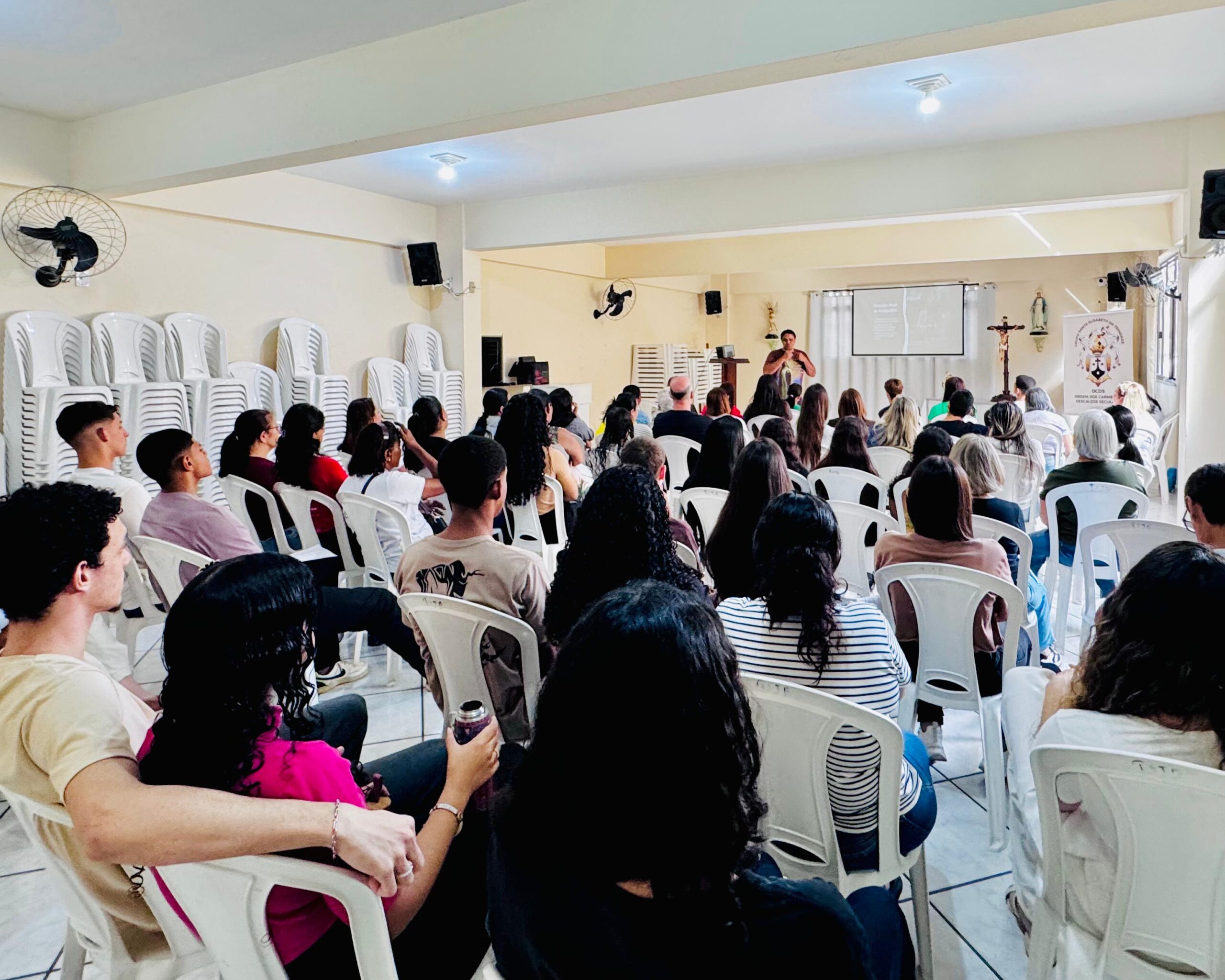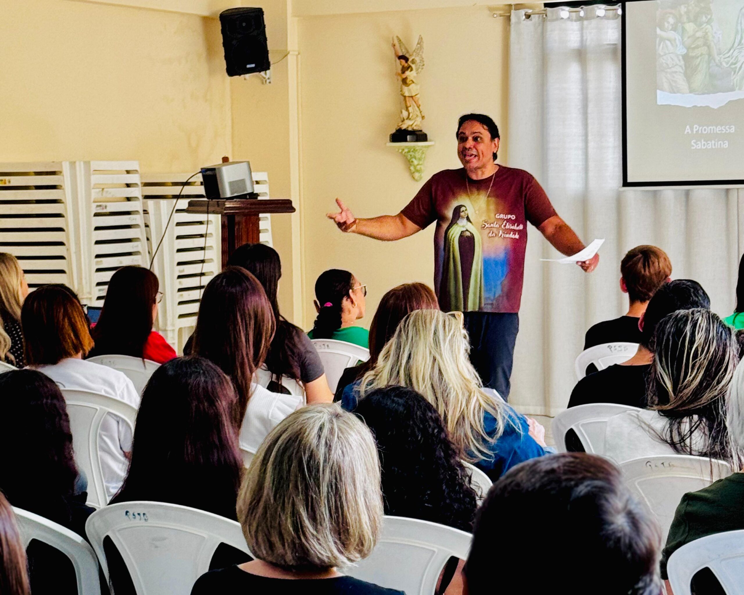 Fiéis participam de encontro para receber a imposição do Escapulário de Nossa Senhora do Carmo