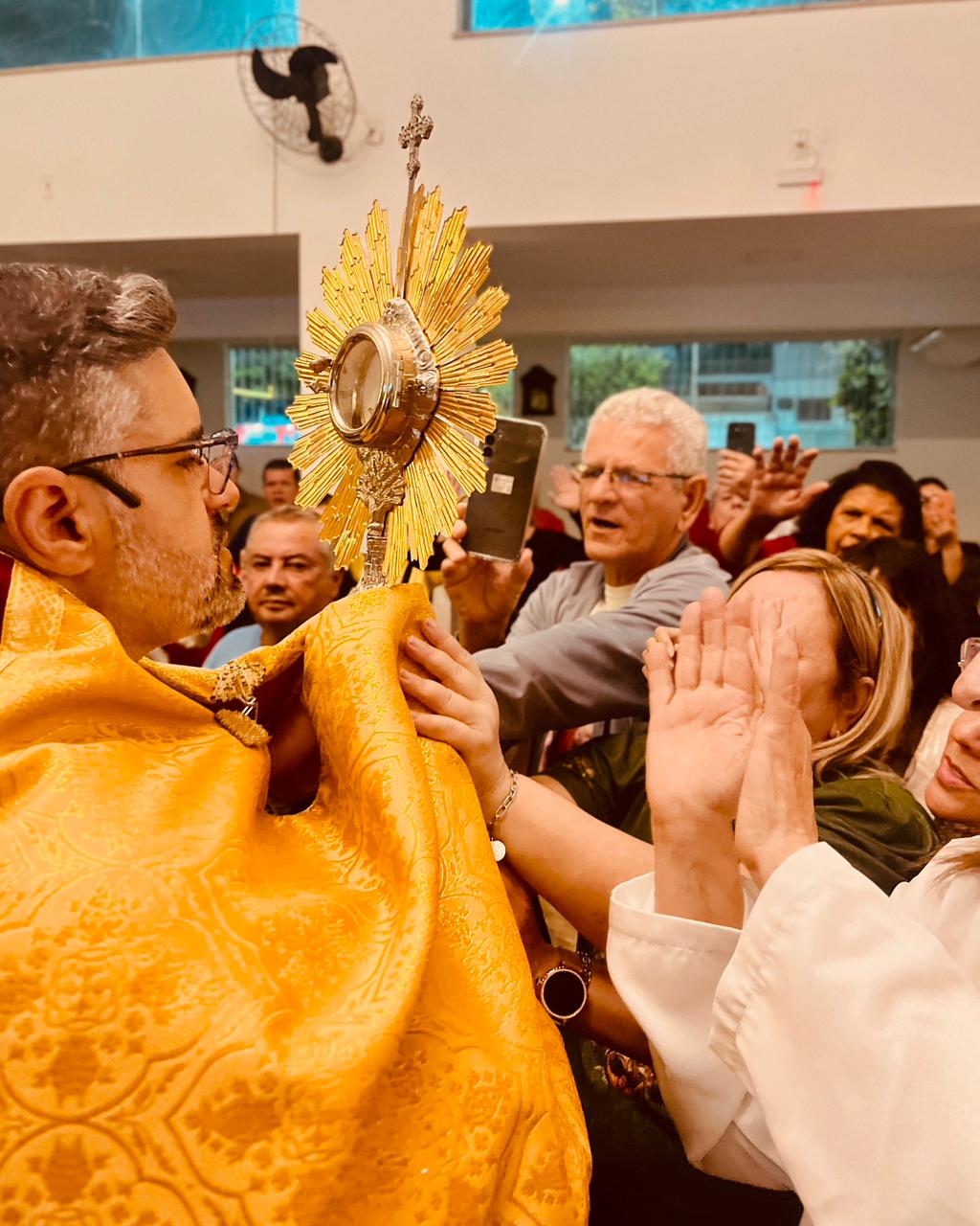 Neste domingo (26/10), um grupo de 24 jovens e adultos receberam a Sagrada Comunhão pela primeira vez. De acordo com o pároco Pe. Alexandre Mothé, foi uma experiência emocionante tanto na vida deles, quanto da comunidade. A Paróquia tem promovido várias frentes de catecumenato. Dos que receberam a Eucaristia, 14 participaram da Etapa da Catequese para jovens e adultos, outro grupo, formado por 10 participam dos encontros da etapa da Crisma. O curso de crisma, teve início em março deste ano, já a catequese para jovens e adultos teve início no mês de agosto. Um dos adultos também recebeu o batismo, durante a Santa Missa. “Os que não vão se crismar este ano vão fazer a preparação no ano que vem”, mencionou o sacerdote.