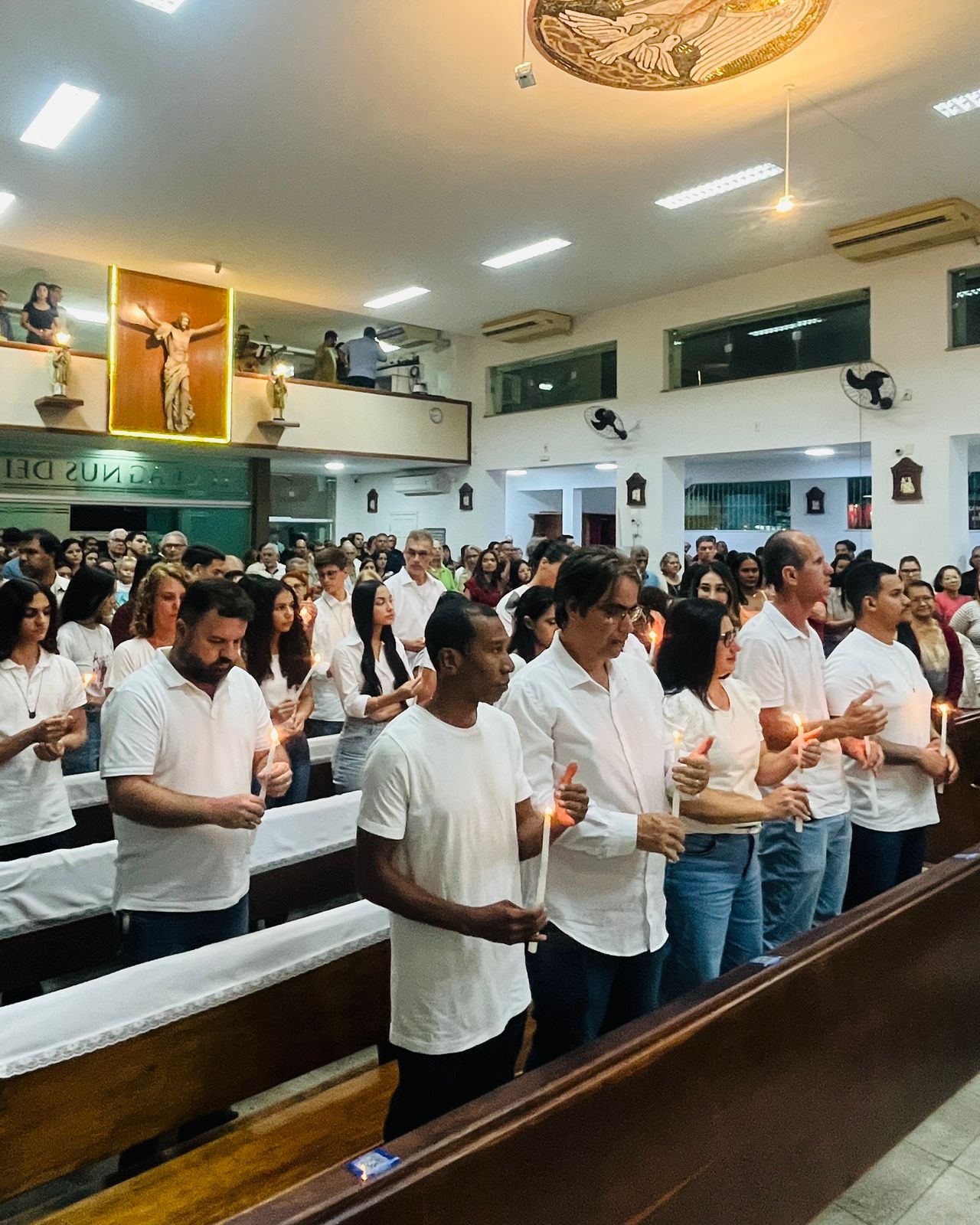 Jovens e adultos da Paróquia São João Batista recebem a Primeira Comunhão