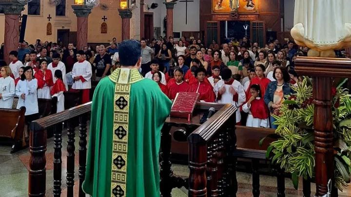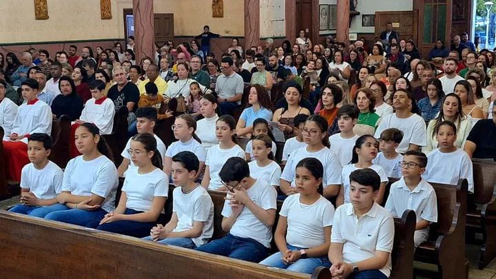Os fiéis da Paróquia Senhor Bom Jesus celebraram, neste domingo (06/07), um momento especial na vida de 20 crianças, que foram investidas como coroinhas, na Igreja Matriz. A celebração foi presidida pelo pároco Pe. Rogério Cabral e concelebrada pelo pároco emérito Pe. Vicente.