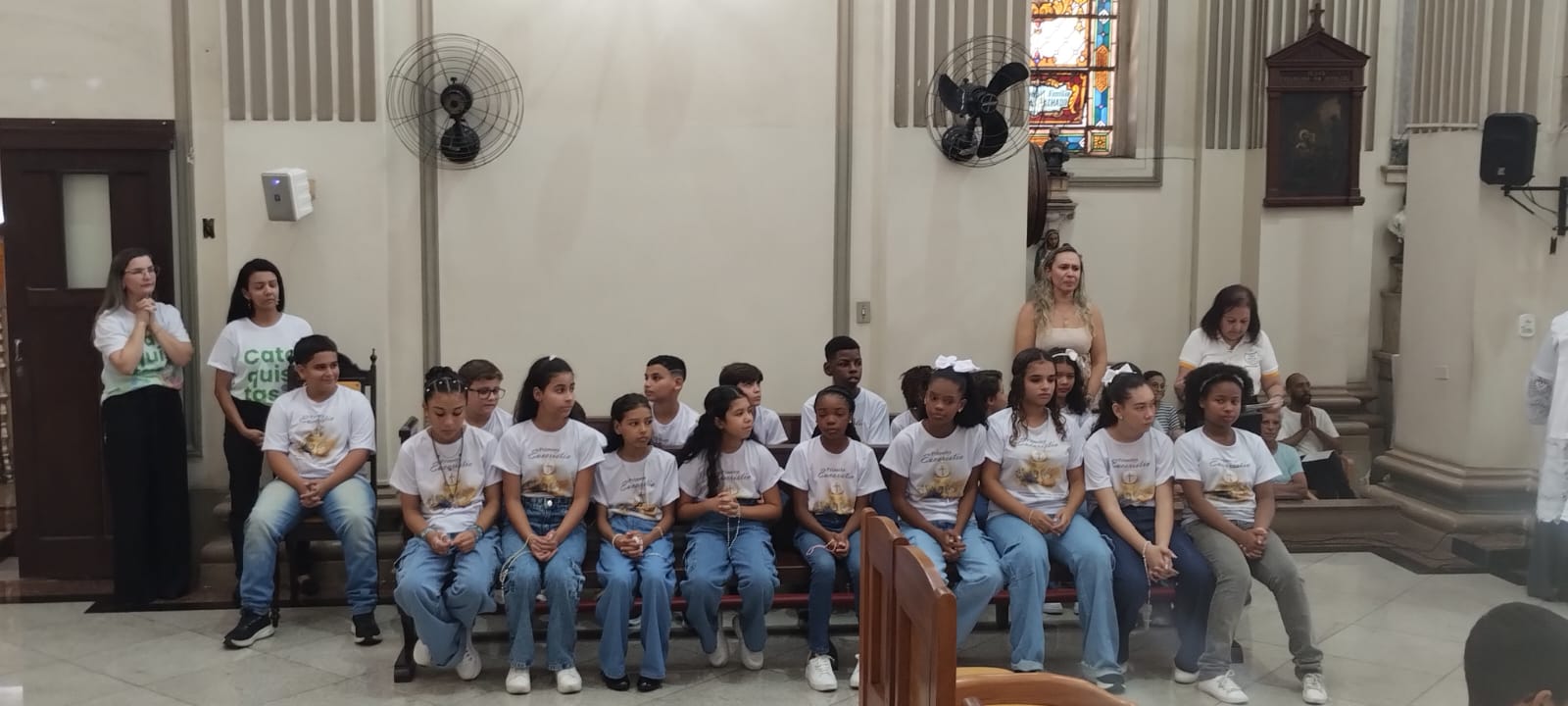 Após a formação os membros participaram da Santa Missa, presidida pelo Pe Romário. A celebração também foi vivenciada por festa para a comunidade. Os fiéis testemunharam a primeira Comunhão Eucarística de 19 crianças, da etapa da Catequese.