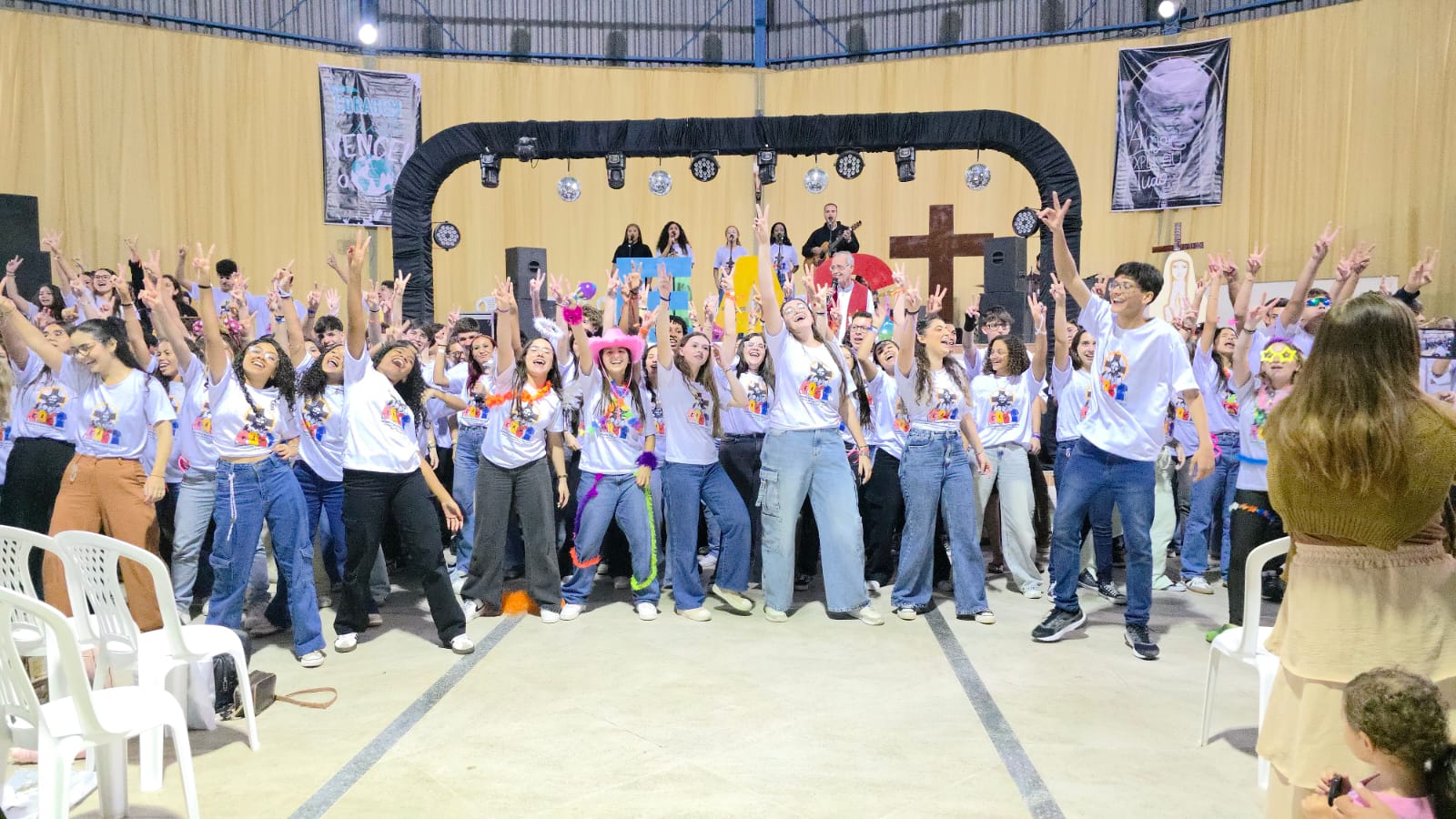 Durante todo o dia, os adolescentes participaram de momentos de louvor, dança e adoração. Encontro Adolescente com Cristo (EAC) é um movimento que visa levar adolescentes a um encontro pessoal com Jesus Cristo, proporcionando uma experiência transformadora através da oração, partilha e vivências comunitárias. O objetivo principal é o de resgatar, aprofundar e fortalecer a fé dos adolescentes e jovens, incentivando-os a serem ativos na comunidade e a viverem de acordo com os valores cristãos.