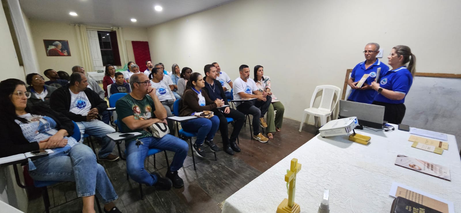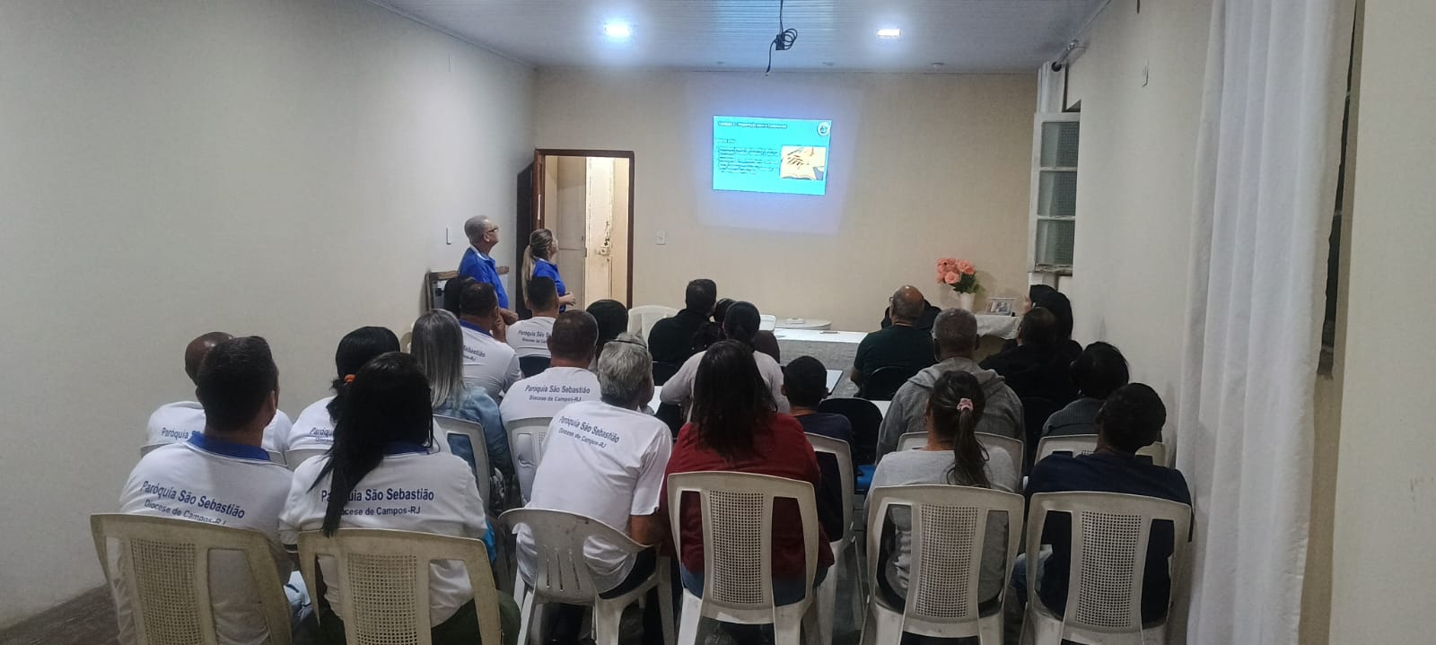 Na noite da última quinta-feira (23/10), a Comissão Diocesana da Pastoral Familiar promoveu um encontro de formação para os casais do setor pré-matrimonial da Paróquia São Sebastião, na baixada campista. O encontro foi para orientação sobre o decreto do Bispo Diocesano, Dom Roberto Francisco, sobre o itinerário pré-matrimonial a ser percorrido pelos casais que buscam o matrimônio. A reunião foi conduzida pelos casais Lídia e Itamir, Marcele e Paulo. “Eles nos mostraram a importância de estarmos sempre estudando, além de entender cada passo novo que a Pastoral Familiar vai seguir da melhor forma. Assim servir a nossa comunidade paroquial com o mesmo empenho e zelo pelo evangelho de Cristo, em união com toda nossa Diocese”, declarou a coordenadora da Pastoral da paróquia, Pollyana.