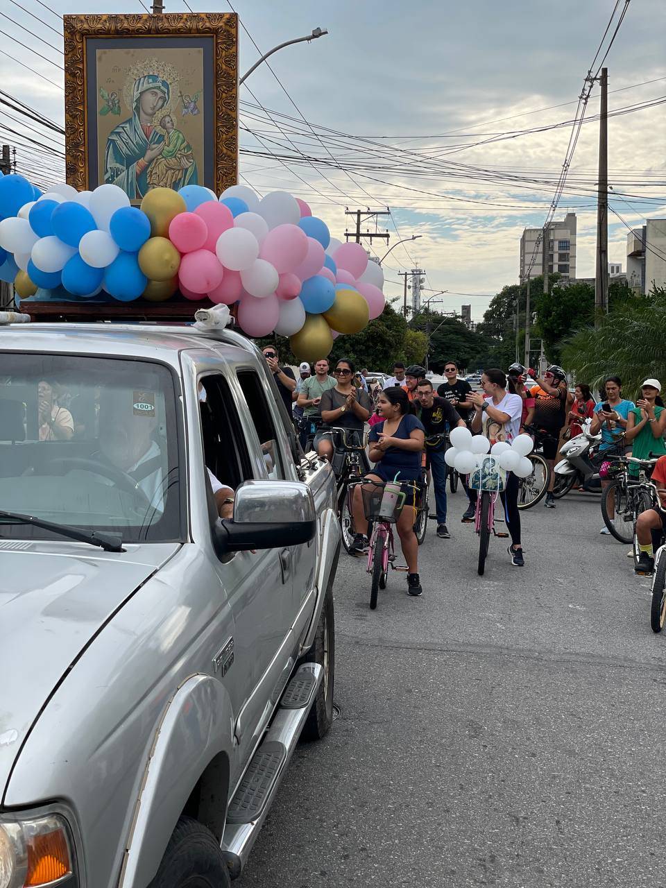 Pelas ruas muitos fiéis de suas casas aguardavam a passagem do ícone e pedindo as bênçãos da mãe e pela paz no trânsito. O passeio ciclístico já é uma tradição na abertura da festa e recebe devotos de toda a cidade.
