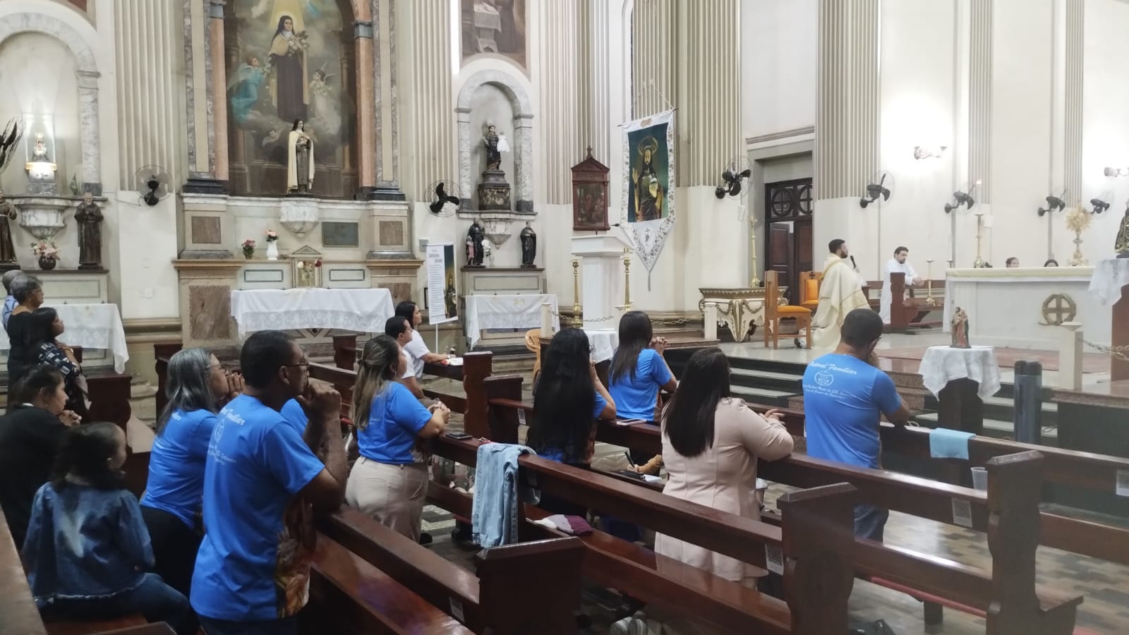 A Pastoral da Familiar da Paróquia da Catedral Basílica Menor do Santíssimo Salvador, realizou no último domingo (17/08), o encontro para as famílias. A reunião teve início às 16h, com uma palestra com o casal Paulo Cordeiro e Marcelle Trindade, que são do Ministério Famílias em Pé. Eles conduziram momentos de louvor e pregação com o tema “A esperança não nos decepciona”. Durante o encontro as famílias participaram de um momento de Adoração ao Santíssimo Sacramento, conduzido pelo vigário Pe. Romário Campos. O evento foi encerrado com a Santa Missa, presidida pelo pároco da Catedral e vigário-geral Monsenhor Leandro Diniz, que deu uma bênção para os integrantes da Pastoral Familiar.