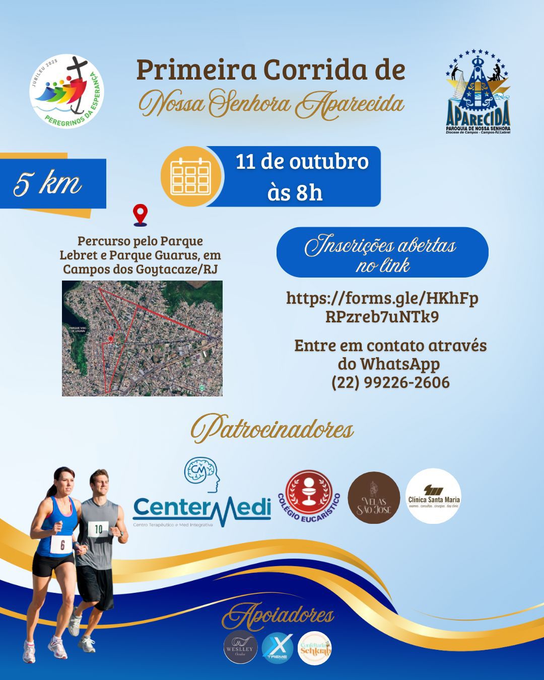 Preparem-se para a 1ª edição da Corrida Rústica da Padroeira, organizada pela paróquia de Nossa Senhora Aparecida, localizada no Parque Lebret. A iniciativa acontecerá no dia 11 de outubro e faz parte da programação dos festejos em homenagem a padroeira da localidade. Haverá prêmios em troféus, brindes e valor em espécie. Todos os competidores receberão medalha de participação.