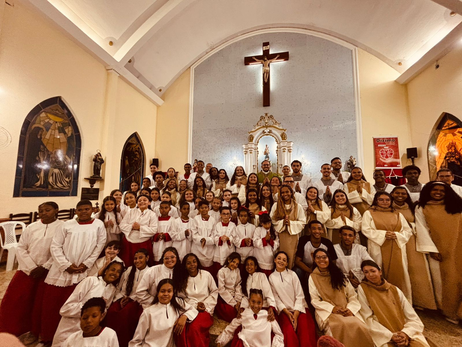 Os fiéis da Quase-Paróquia Nossa Senhora da Penha, no distrito de Tocos, na baixada campista, participaram da Santa Missa em que foram investidos 20 novos coroinhas e 15 cerimoniários. A celebração foi presidida pelo administrador paroquial Pe. Julio Oliveira, foi realizada na Igreja Matriz. Coroinhas e cerimoniários auxiliam na liturgia, sendo os coroinhas crianças e adolescentes que auxiliam nos rituais, e os cerimoniários jovens e adultos com mais experiência, que coordenam as celebrações, garantindo a ordem e a dignidade da liturgia. Os cerimoniários, inclusive, podem ter um papel na instrução de outros coroinhas.
